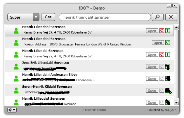Green T is positive in the Danish Telephone Books. Red C is negative in the Danish Citizen hub. Green C is positive in the Danish Citizen Hub.