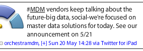 This weekend I noticed a tweet from the MDM tool vendor Orchestra Networks:
