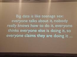 “Big data is like teenage sex. Everybody talks about it, nobody really knows how to do it, everyone thinks everyone else is doing it, so everyone claims they are doing it.”