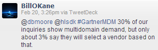 Along the way @BillOKane of @Gartner_inc revealed some numbers about multi-domain MDM from the Gartner camp: