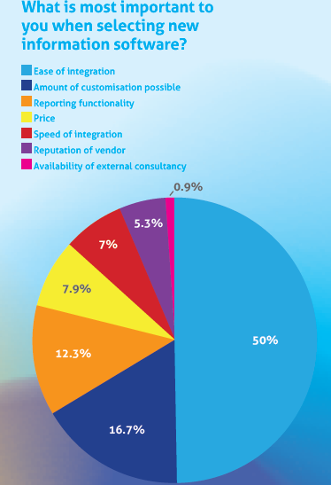 One of the clearest findings was around what drives the selection of information software. The report states: “New software must integrate easily into existing infrastructure and systems. This is far and away the most important consideration for users, who also want that same flexibility to extend to customisation options and reporting functionalities.”