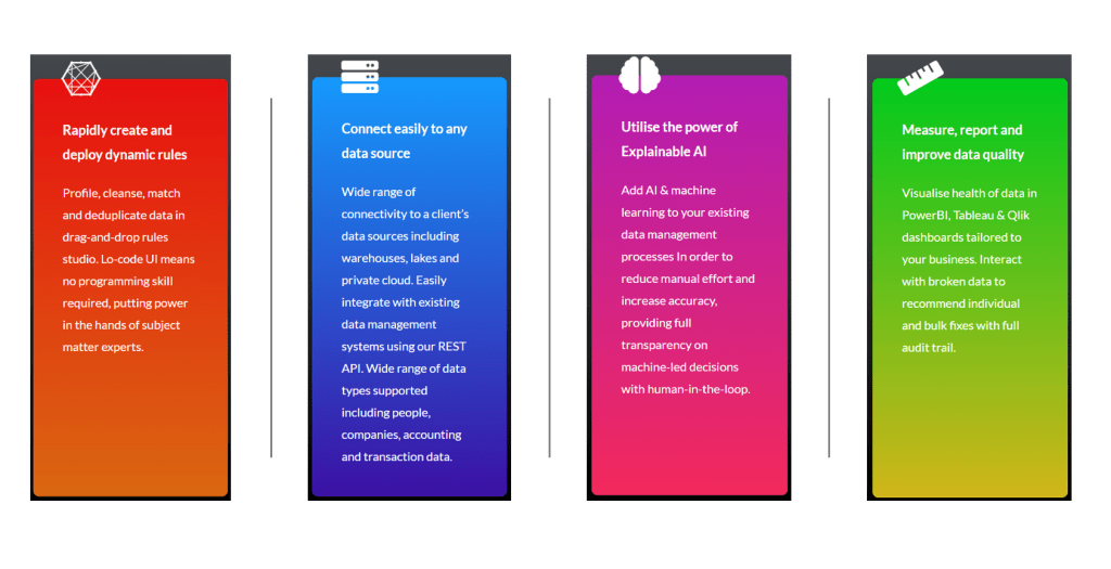 Enrichment / verification with external data can also be used, for example by standardizing addresses or classifying products.