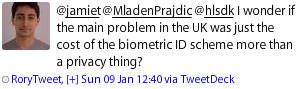 A considerable cost in the suggested project in United Kingdom, and also as I have seen in discussions for a US project, may be that an implementation today should also include biometric technology.